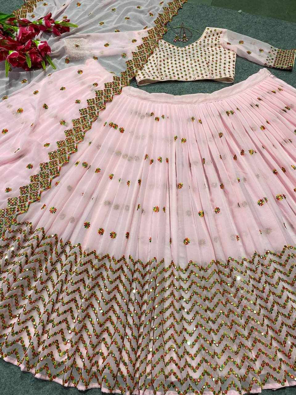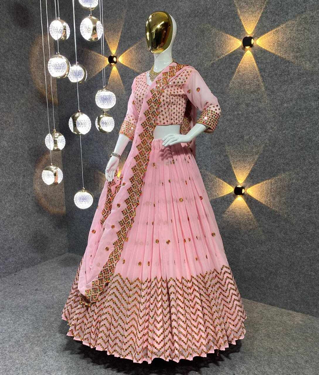 | Name : | MF 412 Peach Heavy Georgette Lehenga |