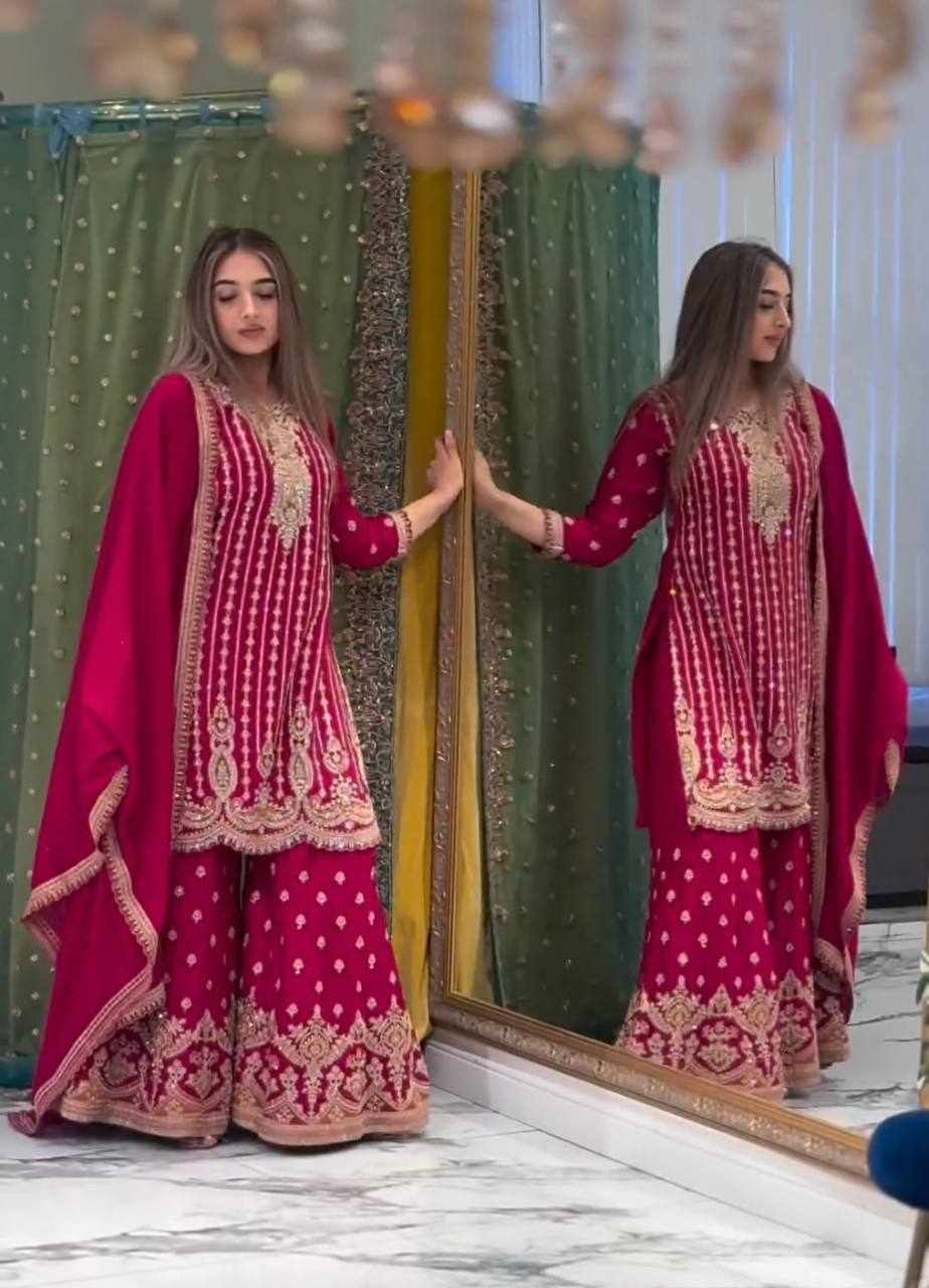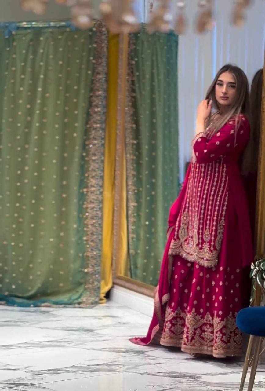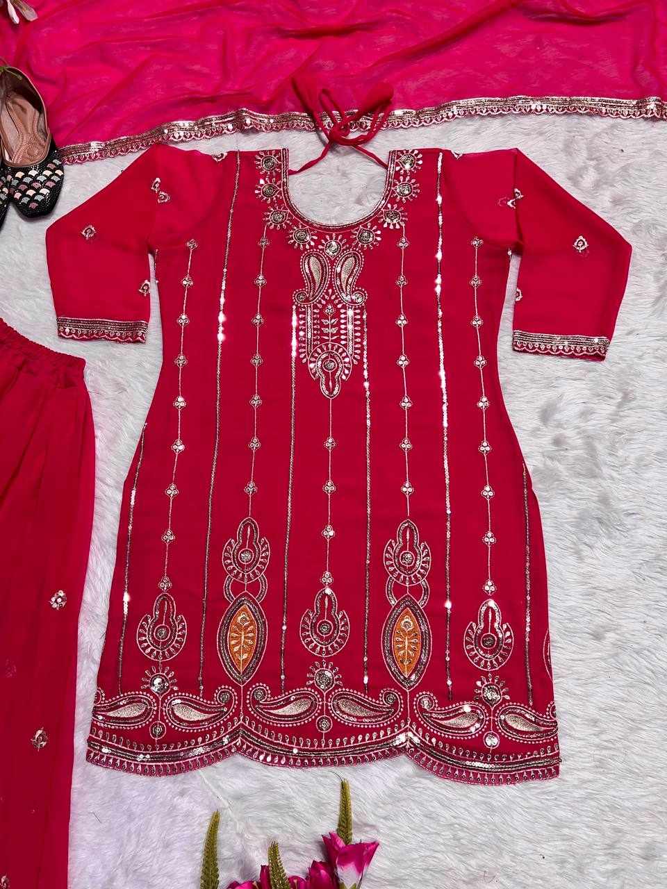 Top Fabric: Heavy Faux Georgette with Heavy 5mm Embroidery Sequence Work with Full Sleeve