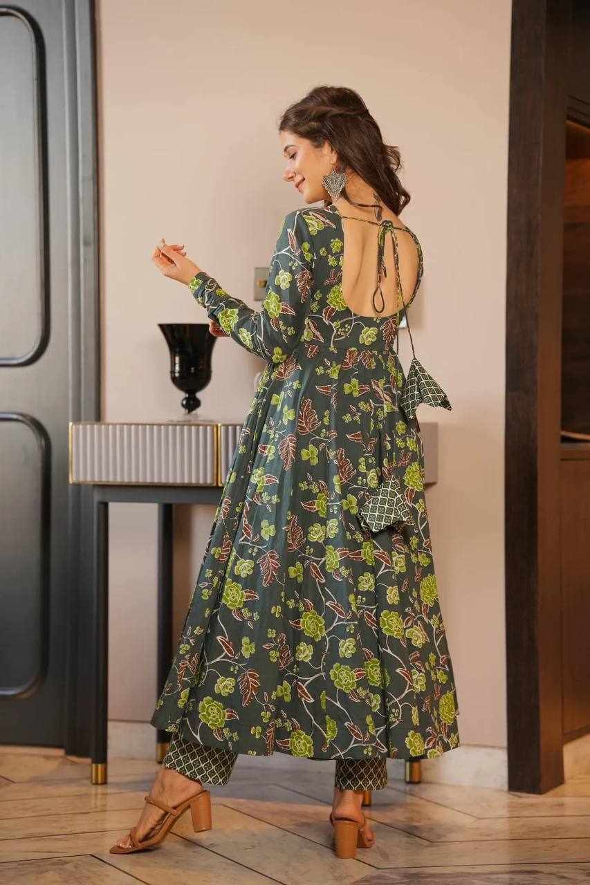 JKWH 998 Pure Fine Cotton Febric Embroidery Work A-line Kurti Set With Pocket