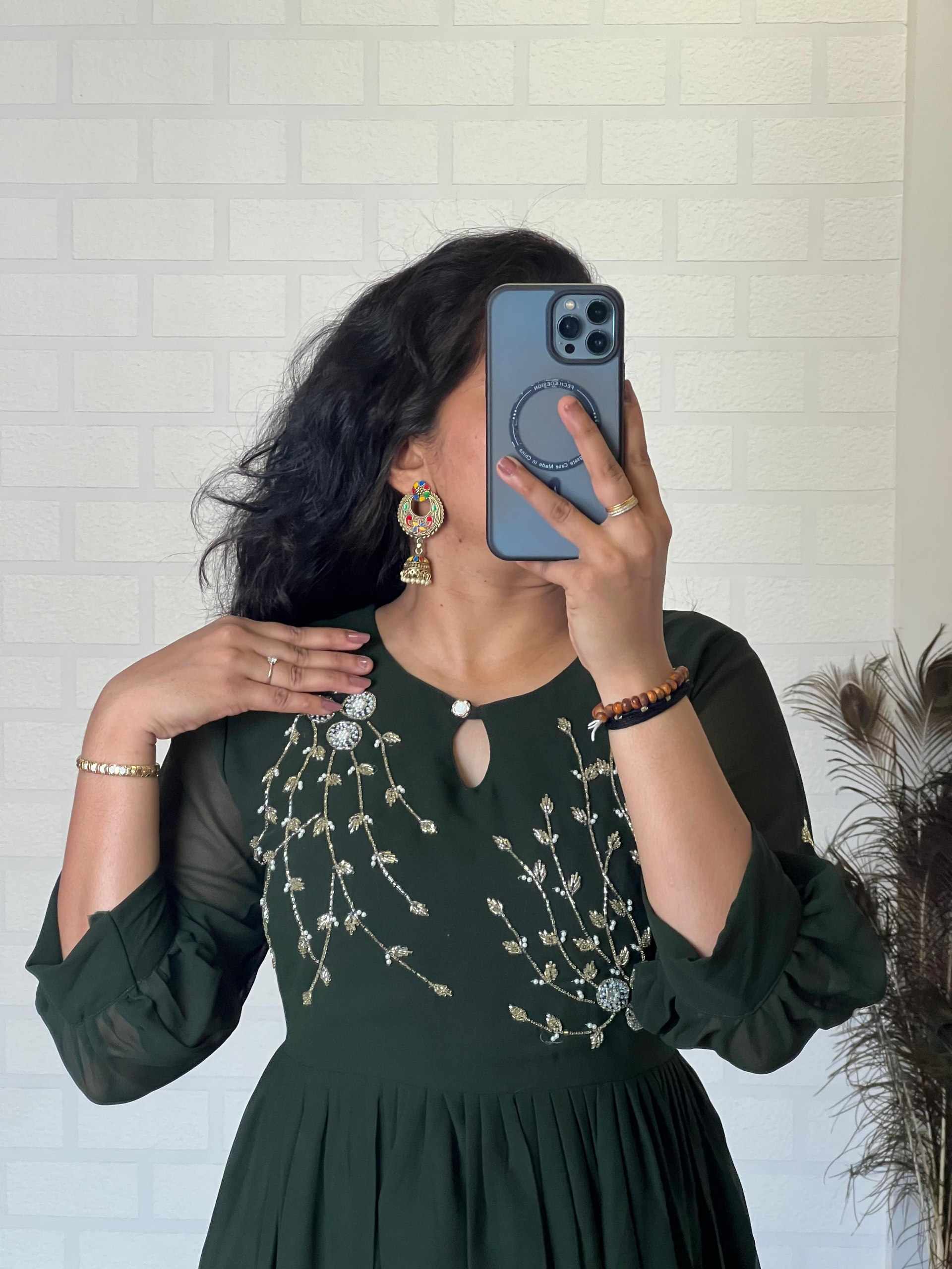 WM09 GREEN BLOOMING GEORGETTE HANDWORK KURTI