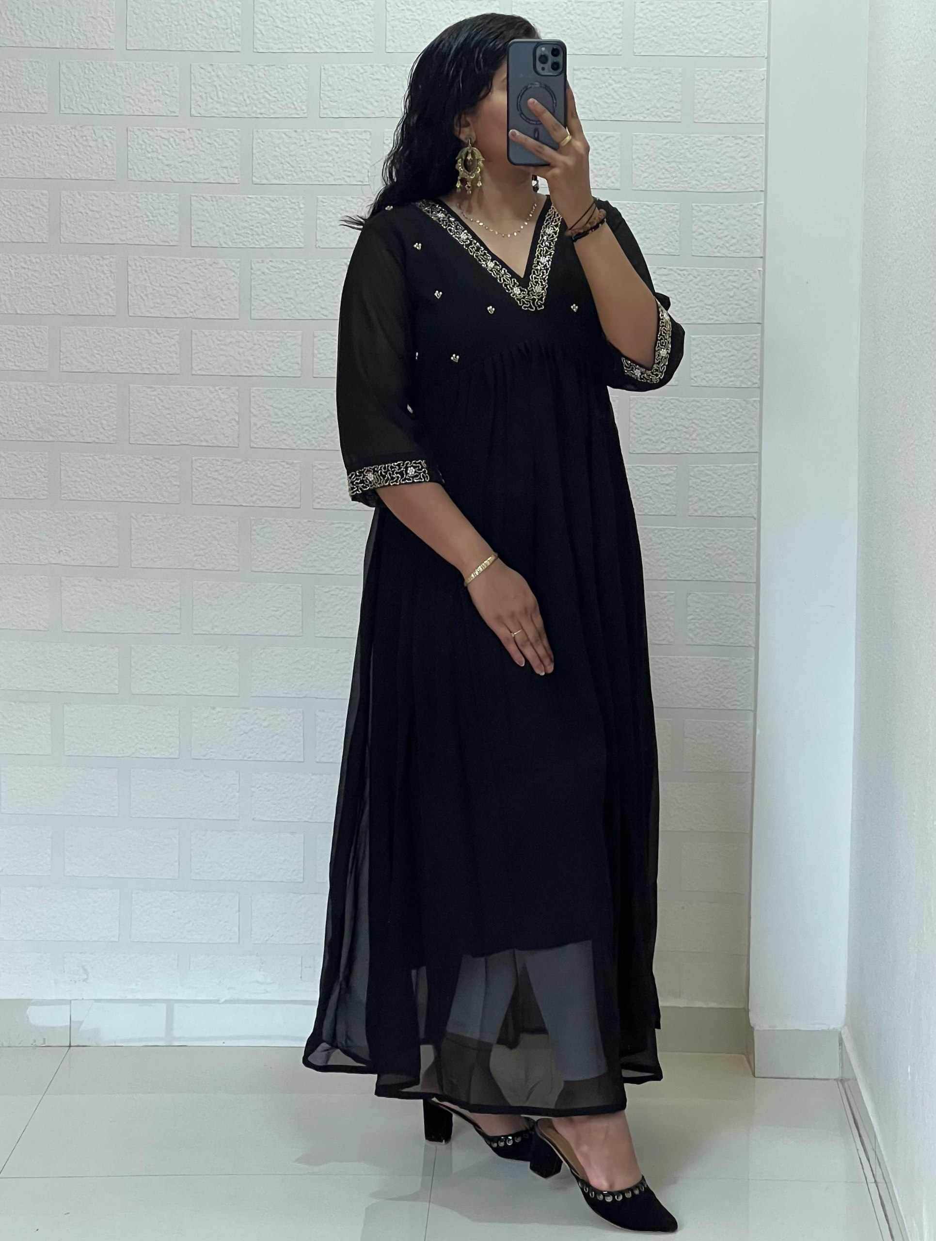 WM10 BLACK BLOOMING GEORGETTE HANDWORK KURTI