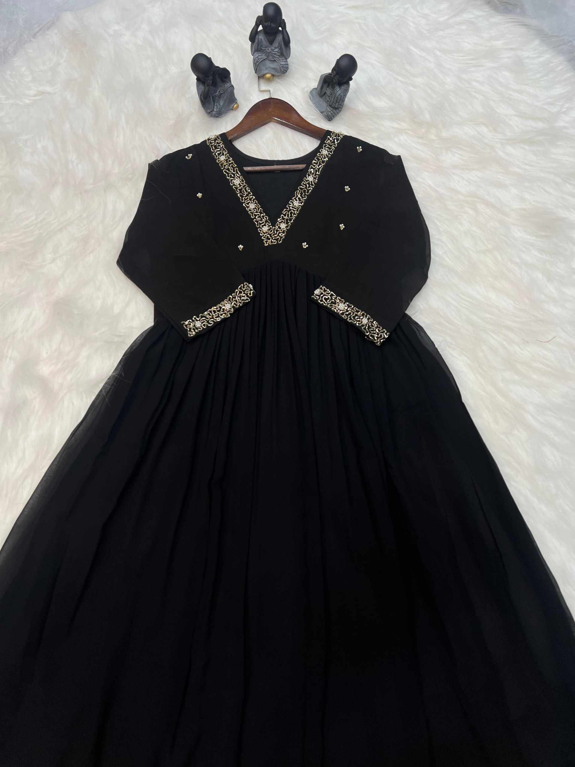 | Name : | WM10 BLACK BLOOMING GEORGETTE HANDWORK KURTI |